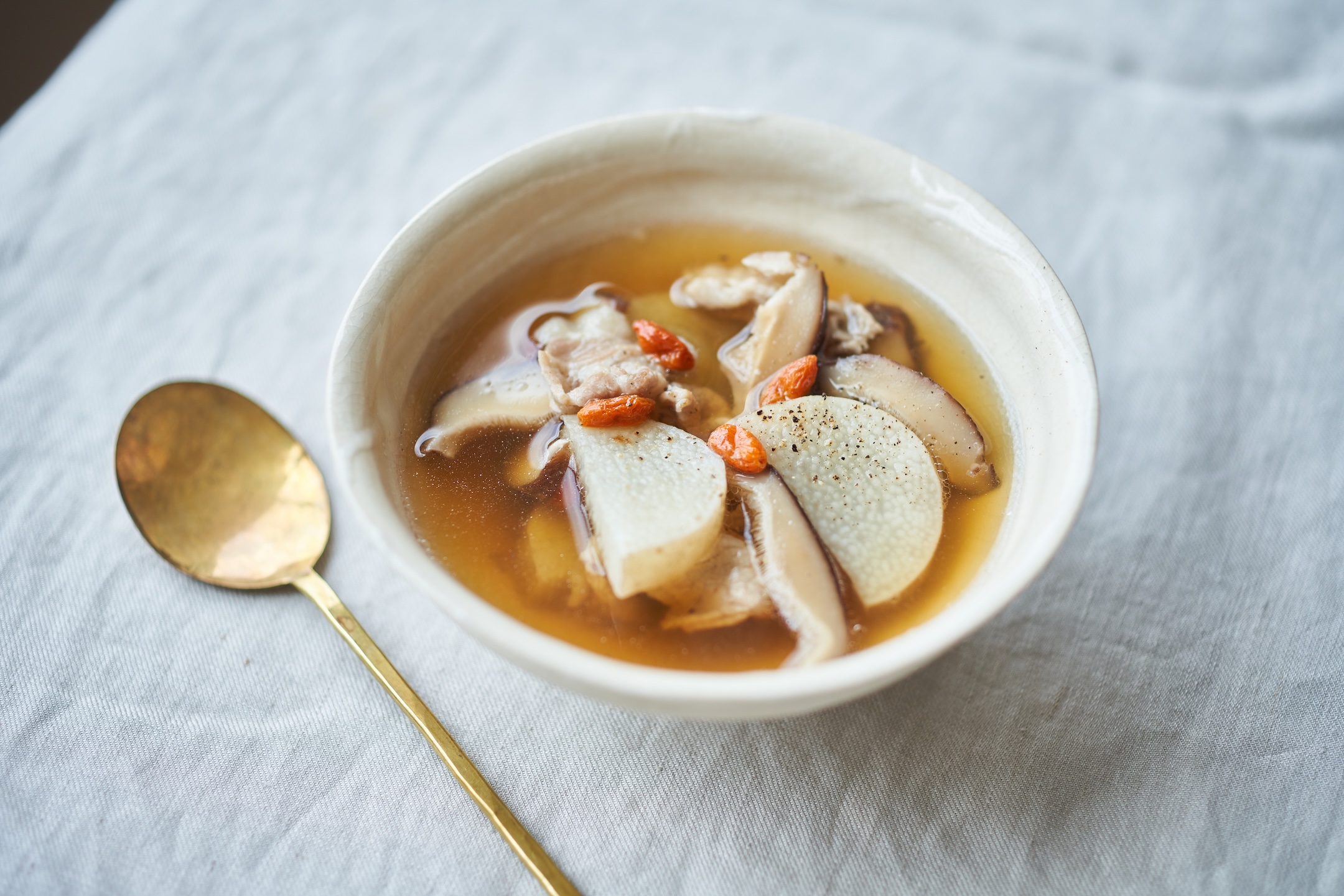 ●秋の薬膳スープ「豚肉と干し椎茸、山芋のスープ」