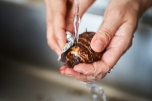 里芋はしっかり洗う。