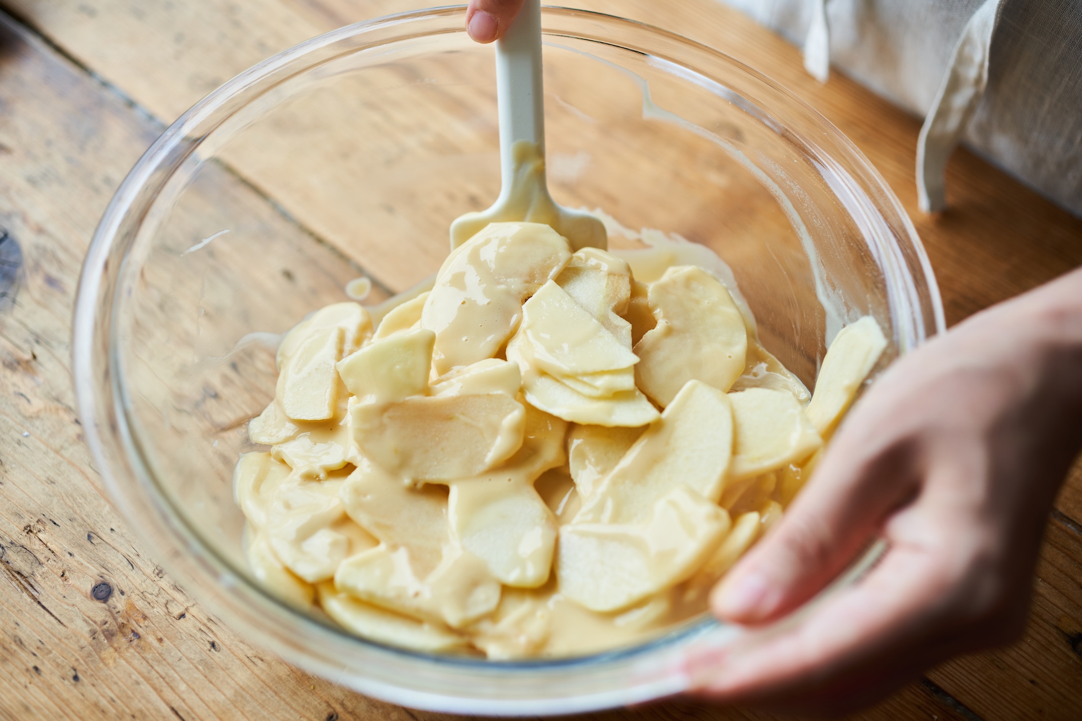 りんごがたっぷり!ヨーグルトたっぷりで軽やかな「りんごのガトーインビジブル」のレシピです。