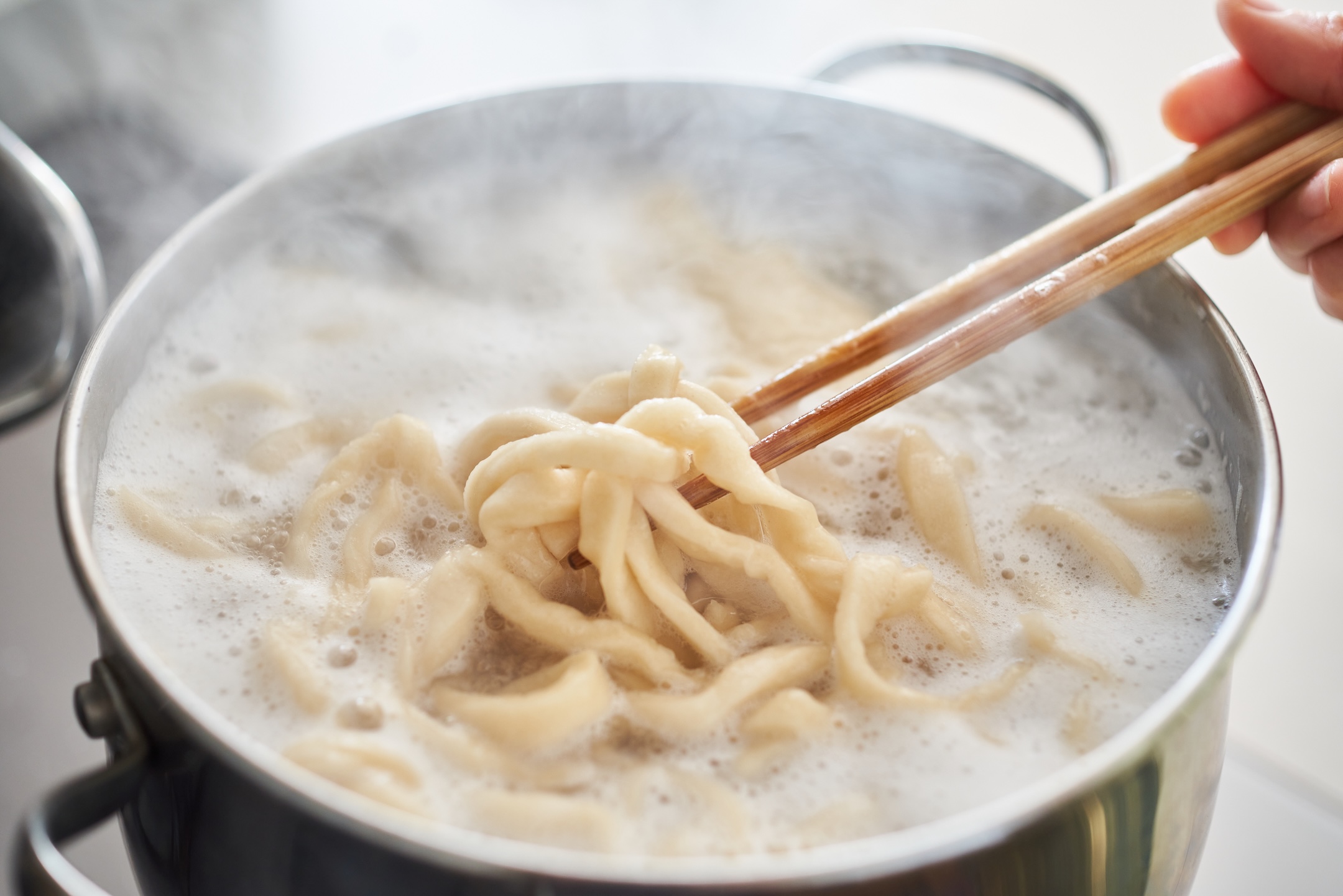 うどんは、手打ちうどんでの茹で方を紹介していますが、