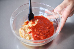 ペースト状になるまで撹拌し、3に混ぜ合わせる。
