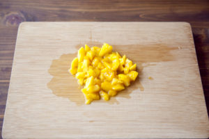 パッションフルーツ、マンゴー、はちみつの半量を合わせてマンゴーソースにする。