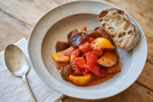 梅干しをちぎり入れて、蓋をして5分蒸し焼きにする。