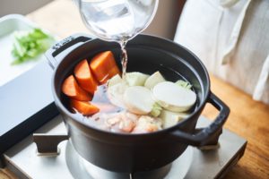 煮たったら、弱火にして20分ほど野菜が柔らかくなるまで加熱する。