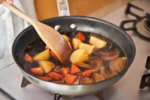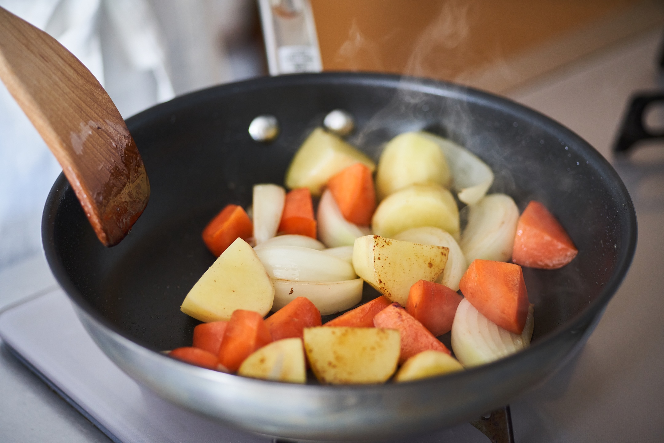 同じフライパンにじゃがいも、玉ねぎ、にんじんを炒める。