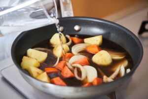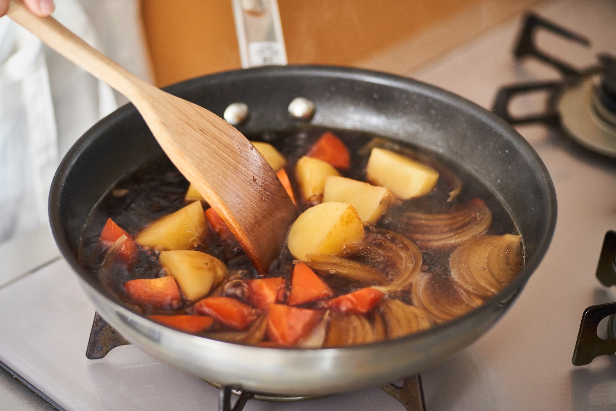 具材を炒めてから煮ることで、だしなしでもコクのある味わいに。