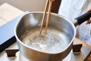 小鍋に水500mlを入れて中火にかけて沸かす。