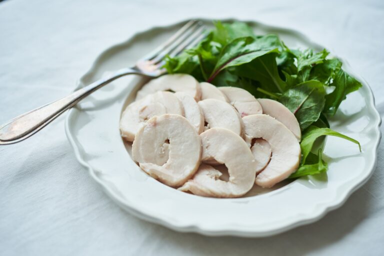 一煮立ちしたら火を消して豚もも肉を鍋に戻し、蓋をしてそのまま10分置く。