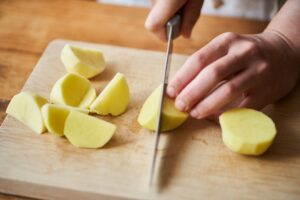 新じゃがいもは皮をむいて、一口大に切る。