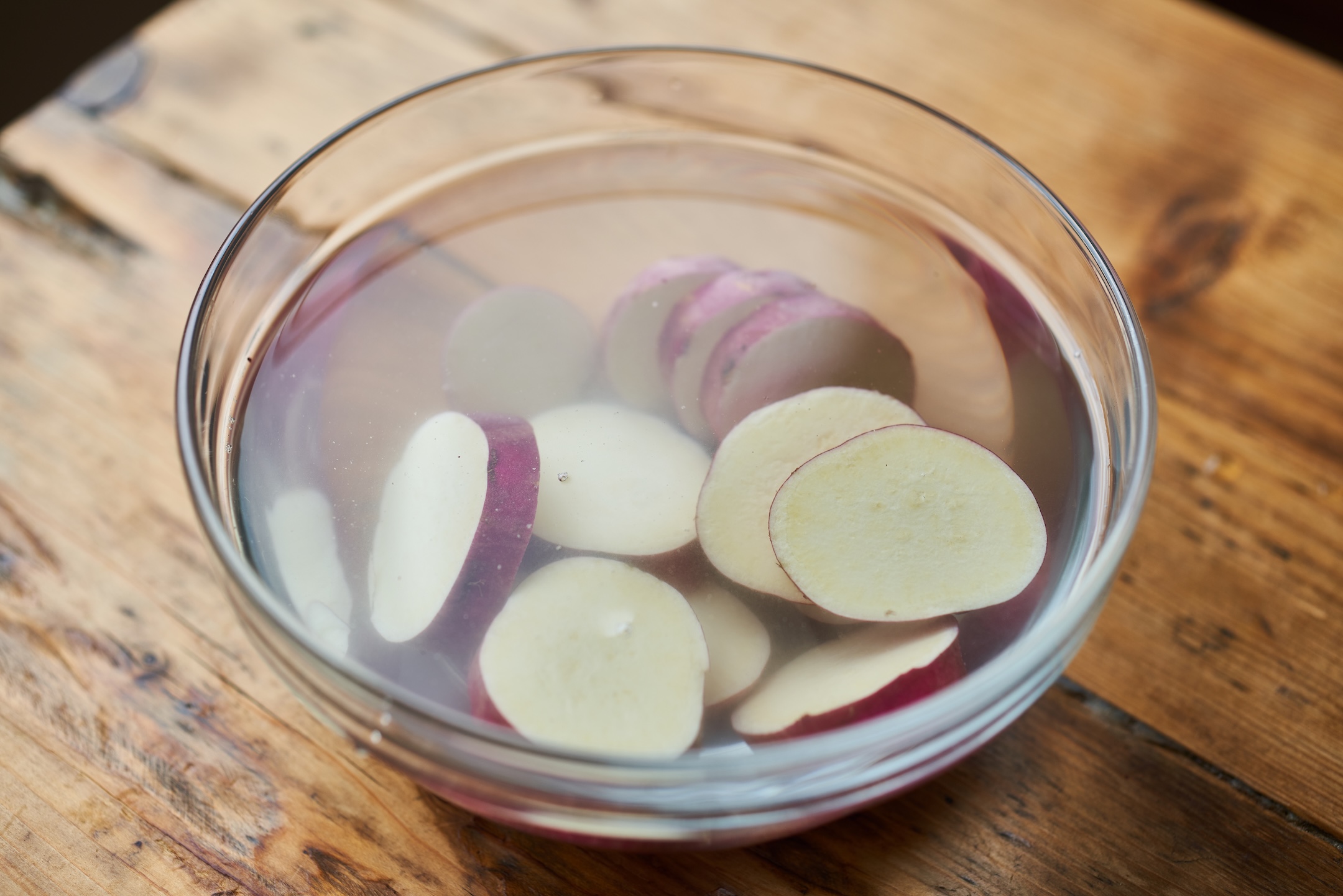 鍋にさつまいもを重ならないように入れ、(A)と水1カップ程度、さつまいもがひたるくらい加えて落とし蓋をして中火にかける。