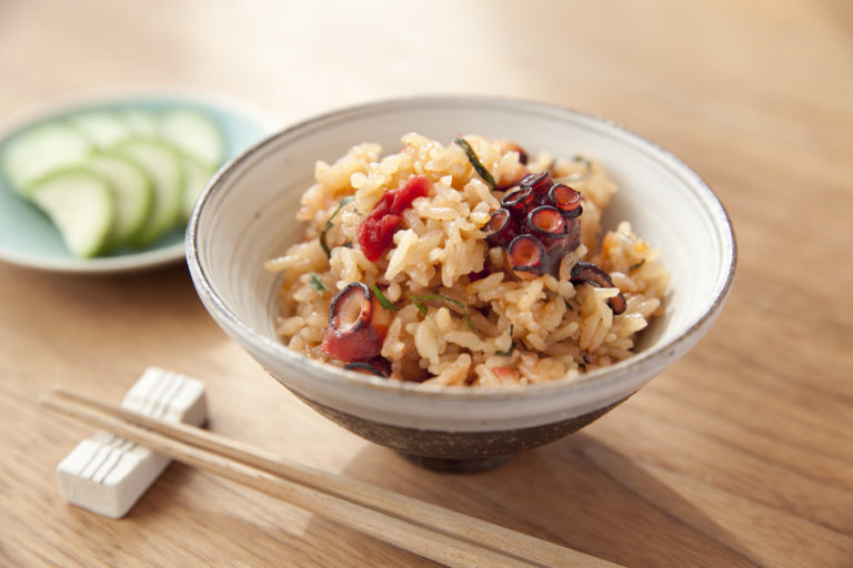 たこと梅の炊き込みご飯のレシピ
