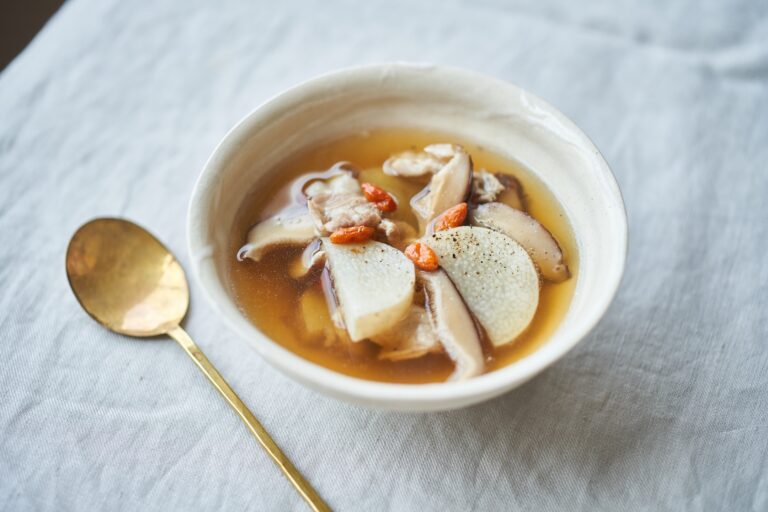 秋の薬膳スープ「豚肉と干し椎茸、山芋のスープ」のレシピ・作り方